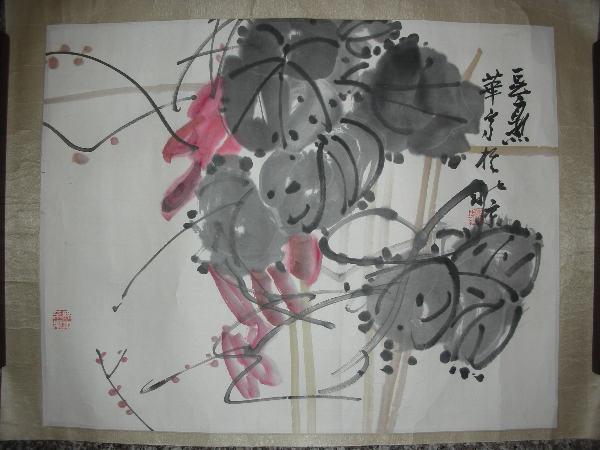 高冠华(1915~1999):江苏南通人。1940年国立艺专国画系第一届毕业,留校任教。解放后分别在天津大学、北京艺术学院、中央美术学院国画系任教,先后达50年之久,担任写意花鸟教授。是潘天寿先生入室弟子,能诗、书、画融为一体。尽管追随潘老30春秋,但力主:“师迹不如师意,师意莫若窺其神韵,探其精英,方可登峰造极。”故其所作:“上撷宋元诸家之长,下究青藤、八大、缶老之奥。”兼习西法,加强造形,认定:“画须始于形似,终于神似,似而不似,不似而似,方为上品。”因此,他的画,不论一花一鸟,一草一木,都赋予绚丽色彩、新异的构图。对疏密聚散、穿插交错要求严格,而且节奏感特别强烈,书寓诗情,神态栩栩,既有传统,又有新意,既有潘老的风骨,又有自家面目。可谓别具一格,独树一帜,近年又继攻指画,并将笔画技法融入指画,提高表现力,还朴反拙,深化意境,给人们以美的享受。深得国内外人士称赏。