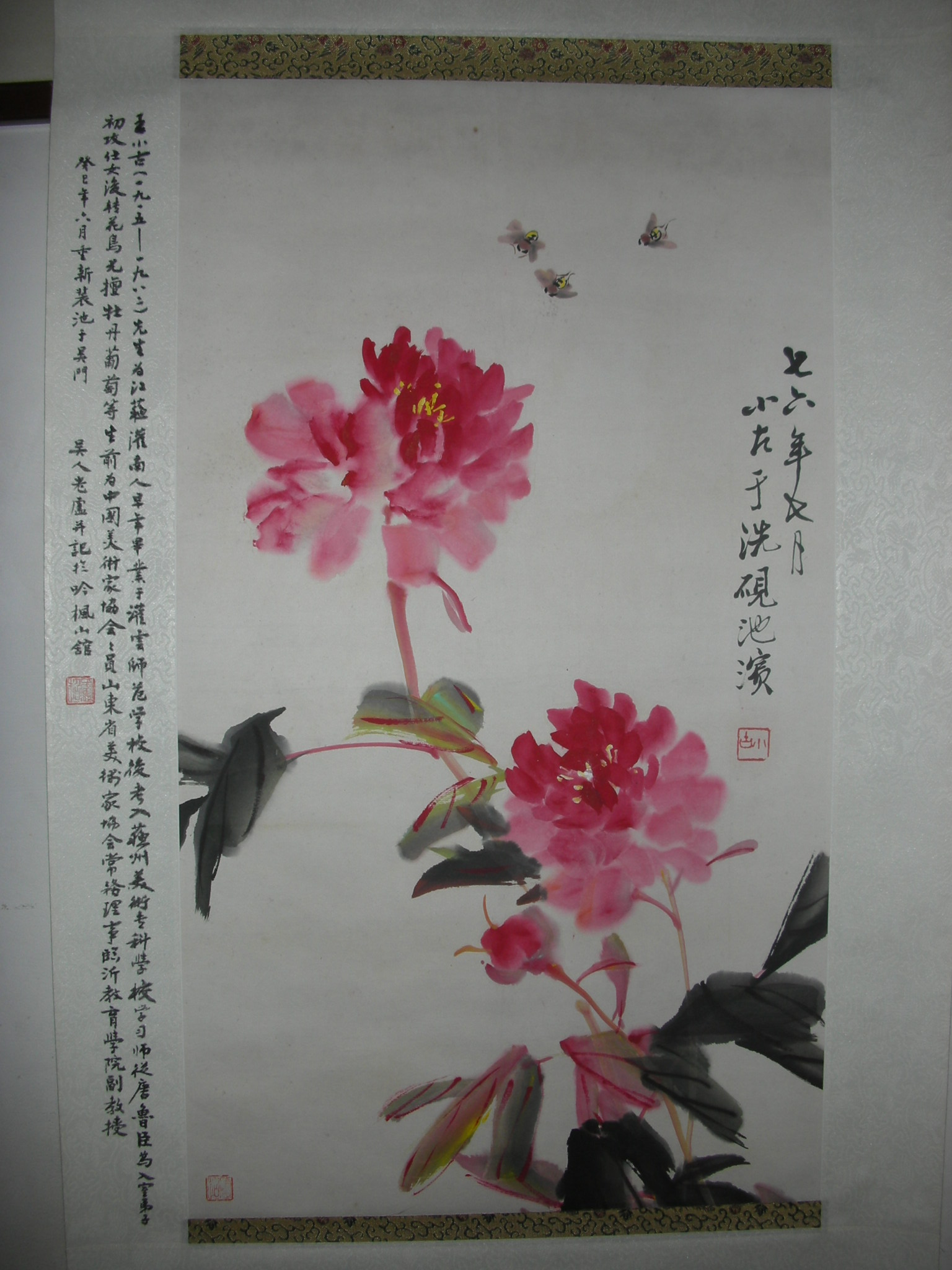 王小古(1915-1982):早年毕业于江苏省灌云师范学校,后考入苏州美术专科学校学习。师从唐鲁臣,为入室弟子,初攻仕女,后转花鸟,尤擅牡丹、葡萄等。所作笔法精熟,墨彩交融,意趣隽永。初习仕女画,继攻花鸟画。先从工笔入手,后改小写意,晚年趋向大写意。画兼取勾勒、没骨两种技法。他注重师法自然。为画好牡丹曾七下菏泽,写生上千幅,将春天的花,夏天的叶,秋天的枝干融为一体,达到形神兼备。其他如以点染法画出的葡萄都具有自己独特的风格。画家关友声题王小古的草虫画称“可惜无声”。王小古一生创作了大量中国画作品。北京人民大会堂山东厅有他的《百蝶图》《玫瑰图》《牡丹图》。先后出版过《公鸡枇杷图》《四季花卉屏》等年画。曾应聘参加过《菏泽牡丹画谱》的绘制。1982年夏,中国美协山东分会、山东美术馆在济南为他举办个人画展。他创作的《鸡上架》《扁豆蝈蝈》《墨牡丹》等,曾在日本、西德、香港等地参加展出。山东美术出版社出版的《王小古画集》收入了他的代表作品。遗稿有《花鸟技法十三讲》和未完成的《中国历代绘画题记》。王小古对诗词、书法、治印亦有较高造诣。近年(21世纪)有人将他的部分诗结集,称《王小古诗五百首》。他长期从事美术教育。1952年起调任山东临沂师范,后又在临沂艺术学校、临沂聋哑学校、临沂教育学院任教。历任临沂师范美术教师、临沂教育学院和山东艺术学院副教授。曾担任临沂地区工艺美术家协会副主席、临沂县政协副主席。生前是中国美协山东分会常务理事、中国美术家协会会员。 |